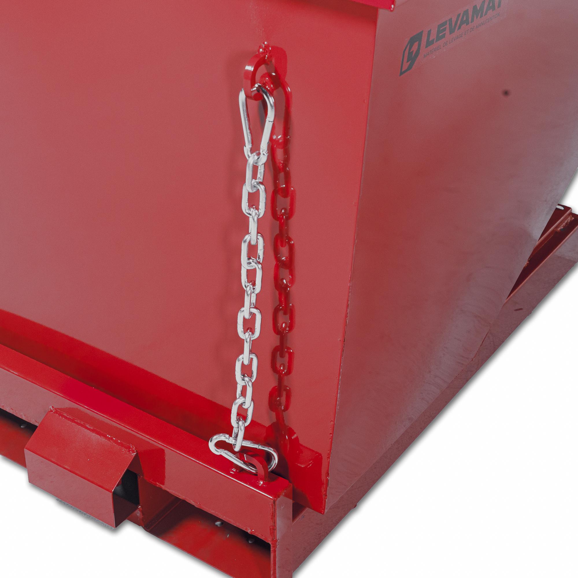 Elle convient aux rebuts industriels, aux copeaux ou aux déchets d’emballage. Veillez à contrôler la capacité de levée de votre chariot élévateur avant manipulation avec charge.