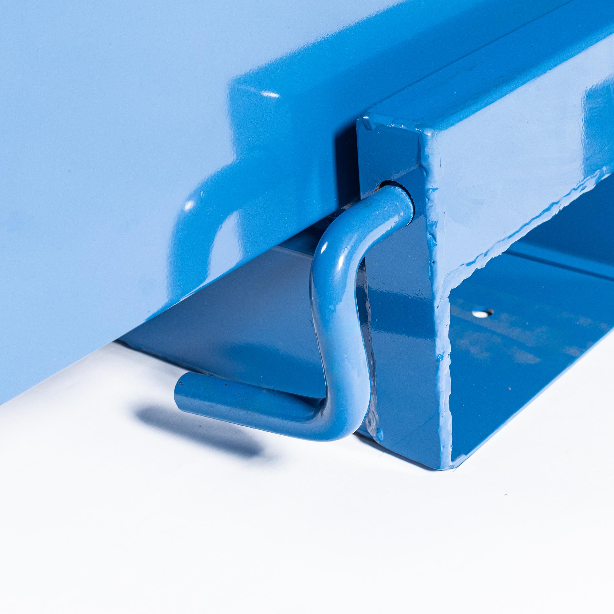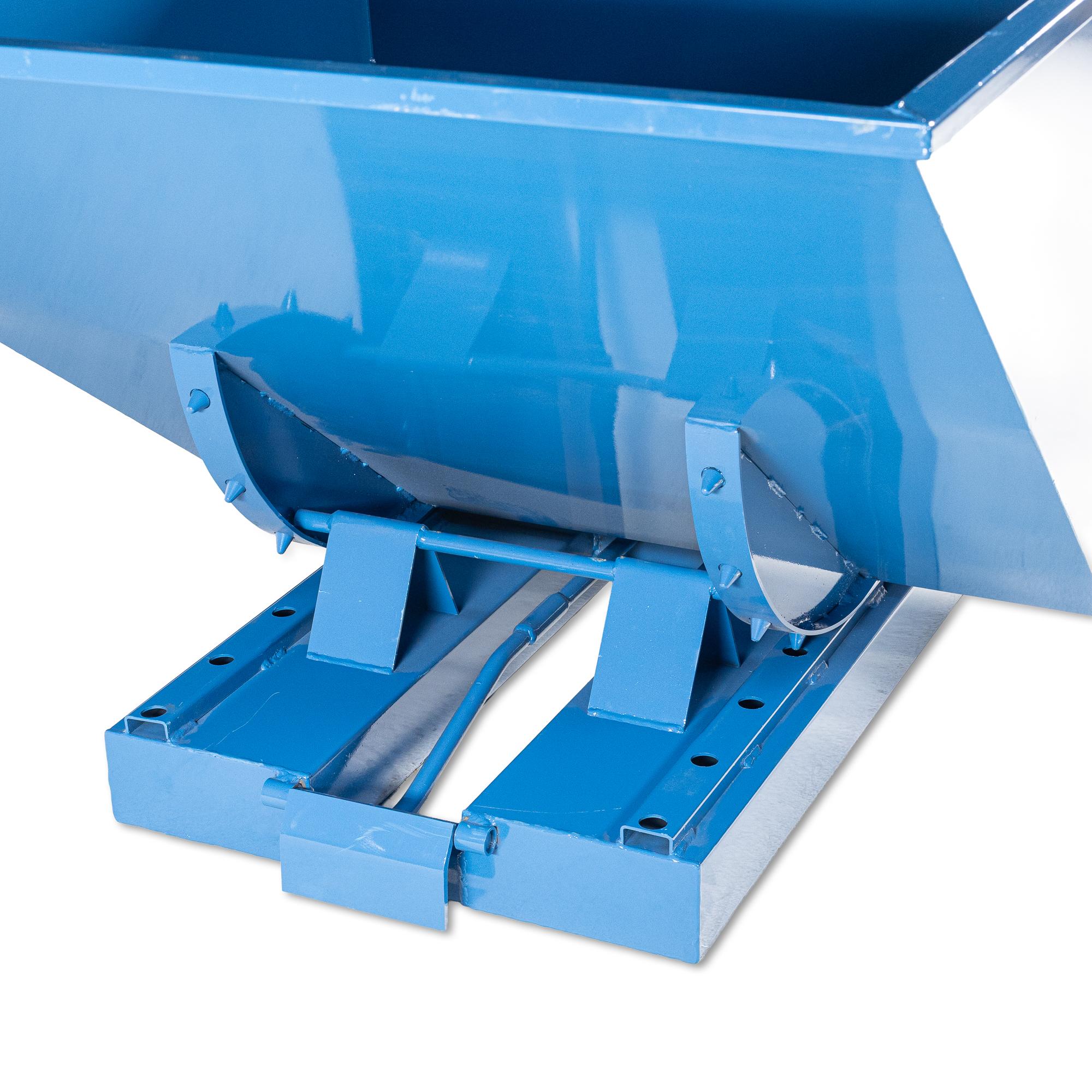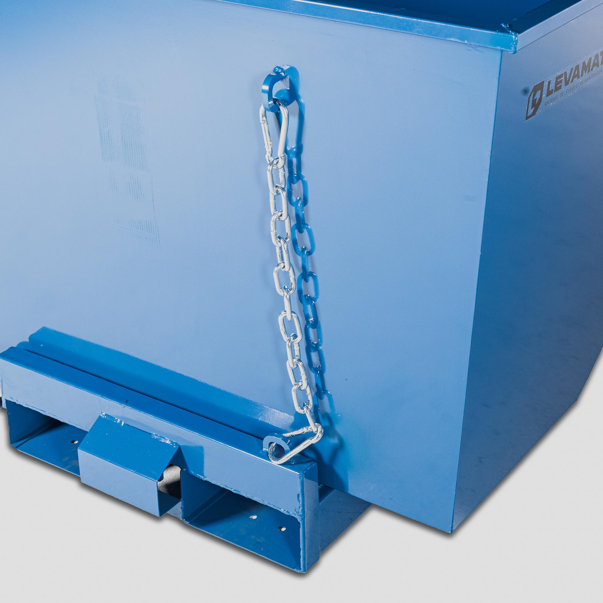 Le système de vidage s’active automatiquement grâce à la pression exercée sur un conteneur ou une paroi. Elle revient ensuite seule en position de départ et se verrouille automatiquement, assurant un transport sécurisé. Une chaîne de verrouillage est incluse pour éviter les basculements involontaires. En option : roues en polyuréthane pour un déplacement optimisé.