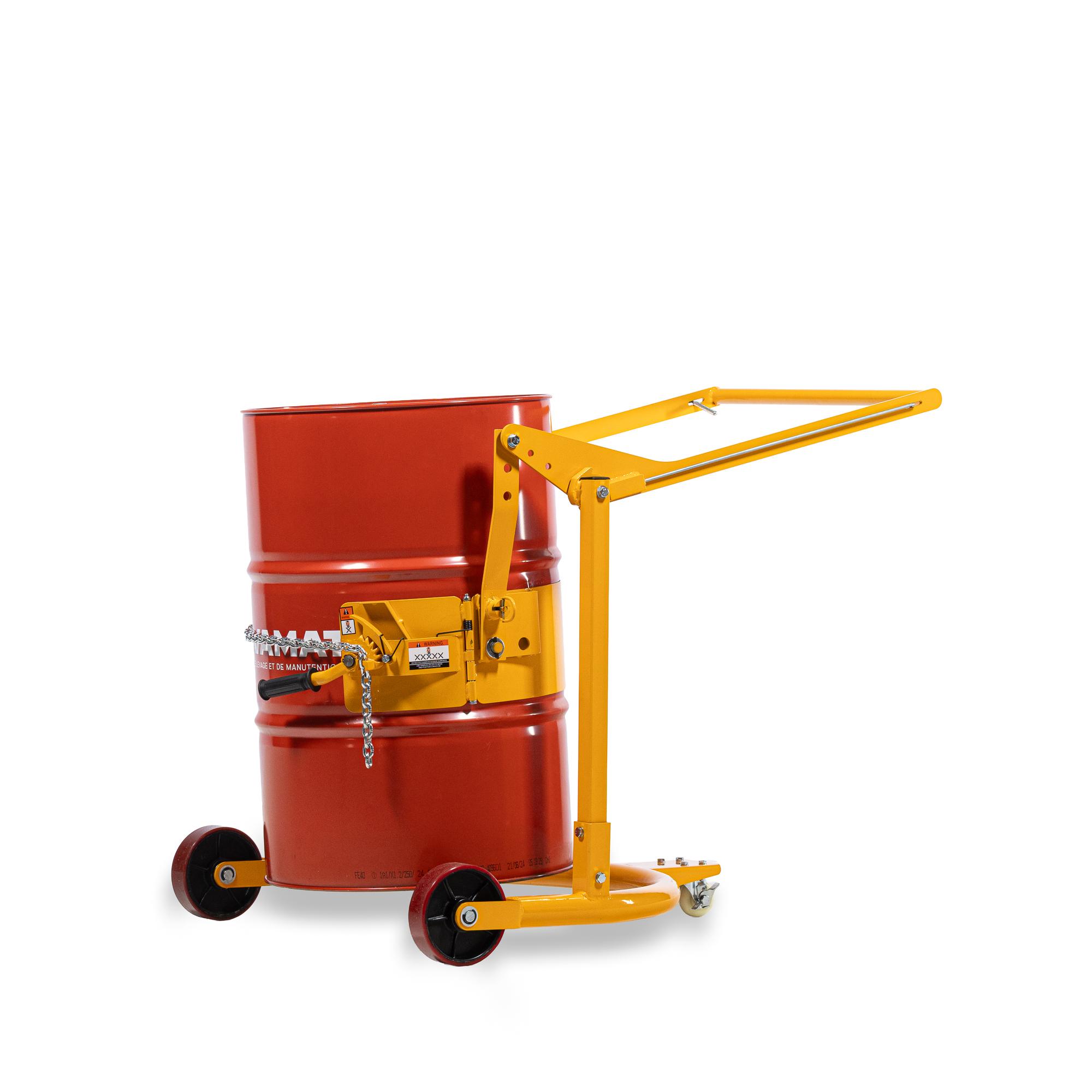 Ce modèle est particulièrement adapté aux opérations de mélange, déversement ou vidage partiel, dans les ateliers, laboratoires ou zones de production. Une large poignée latérale permet de faire pivoter le fût, tout en conservant un bon appui au sol. Utilisable seul, il évite le recours à des gerbeurs retourneurs ou ponts roulants dans les opérations courantes de transfert. Il s’adresse aux secteurs manipulant des liquides, poudres ou matières en vrac, notamment dans la chimie, l’agroalimentaire ou la maintenance.