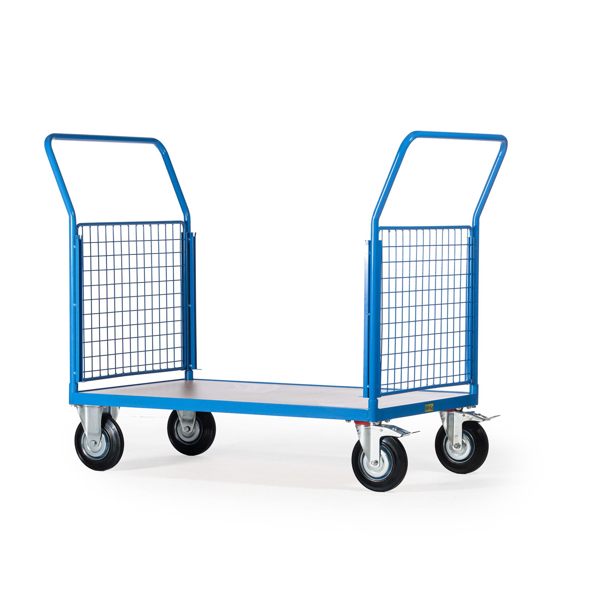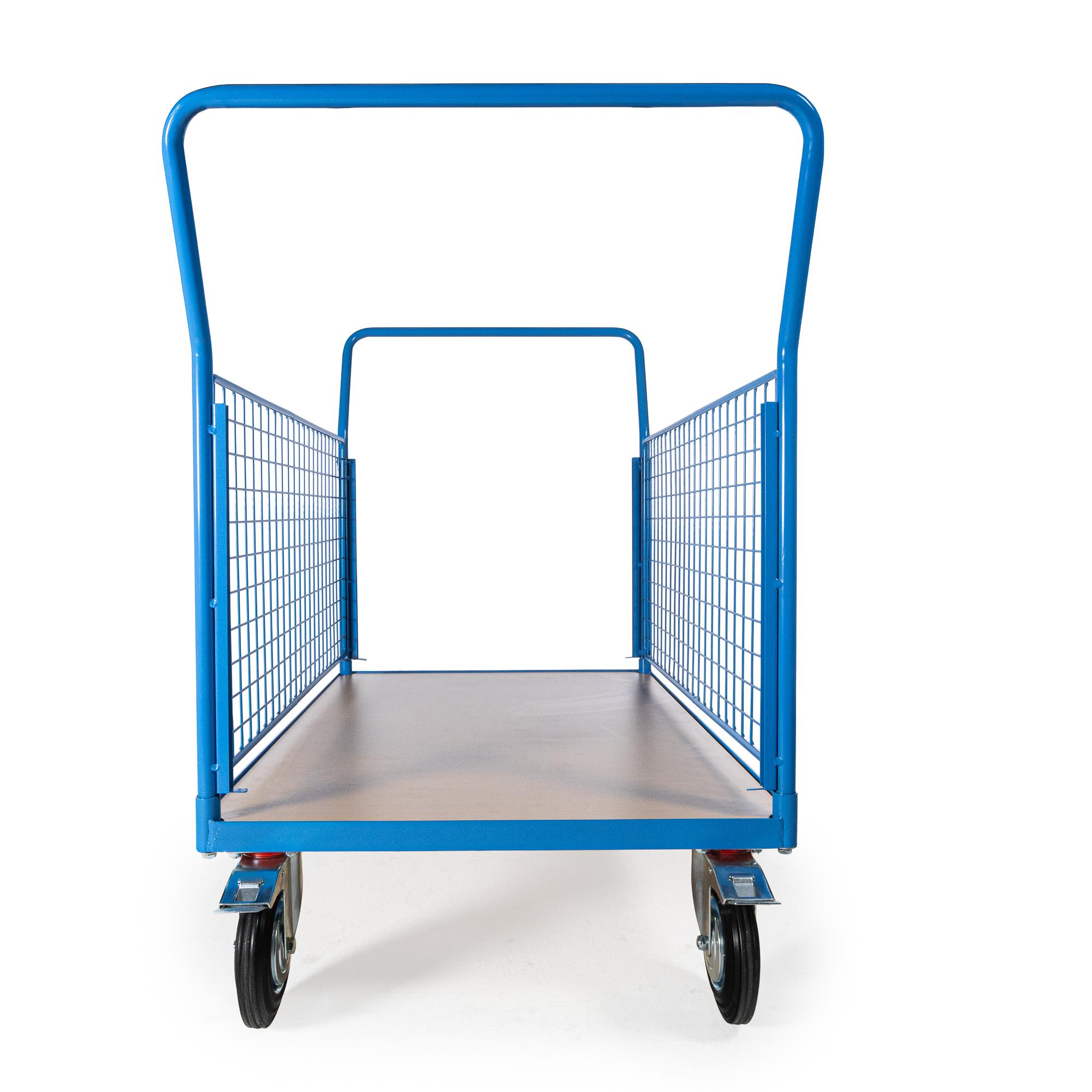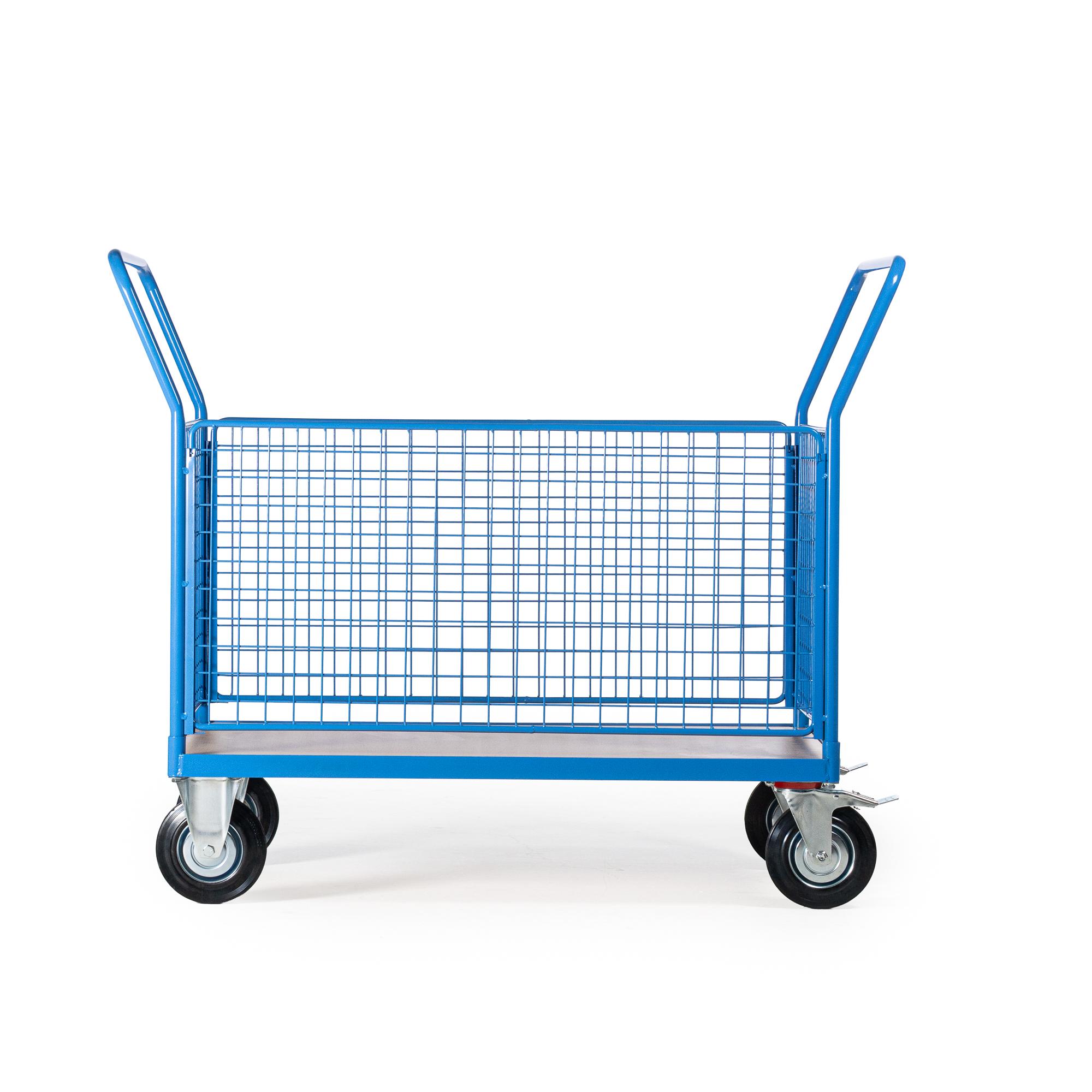 Grâce à ses parois grillagées amovibles sur 4 faces, ce chariot permet de contenir des charges volumineuses ou hétérogènes sans perte de visibilité. Chaque côté est en treillis métallique d’une hauteur de 600 mm, offrant une protection physique sans masquer le contenu, ce qui facilite les contrôles visuels en cours de manutention.