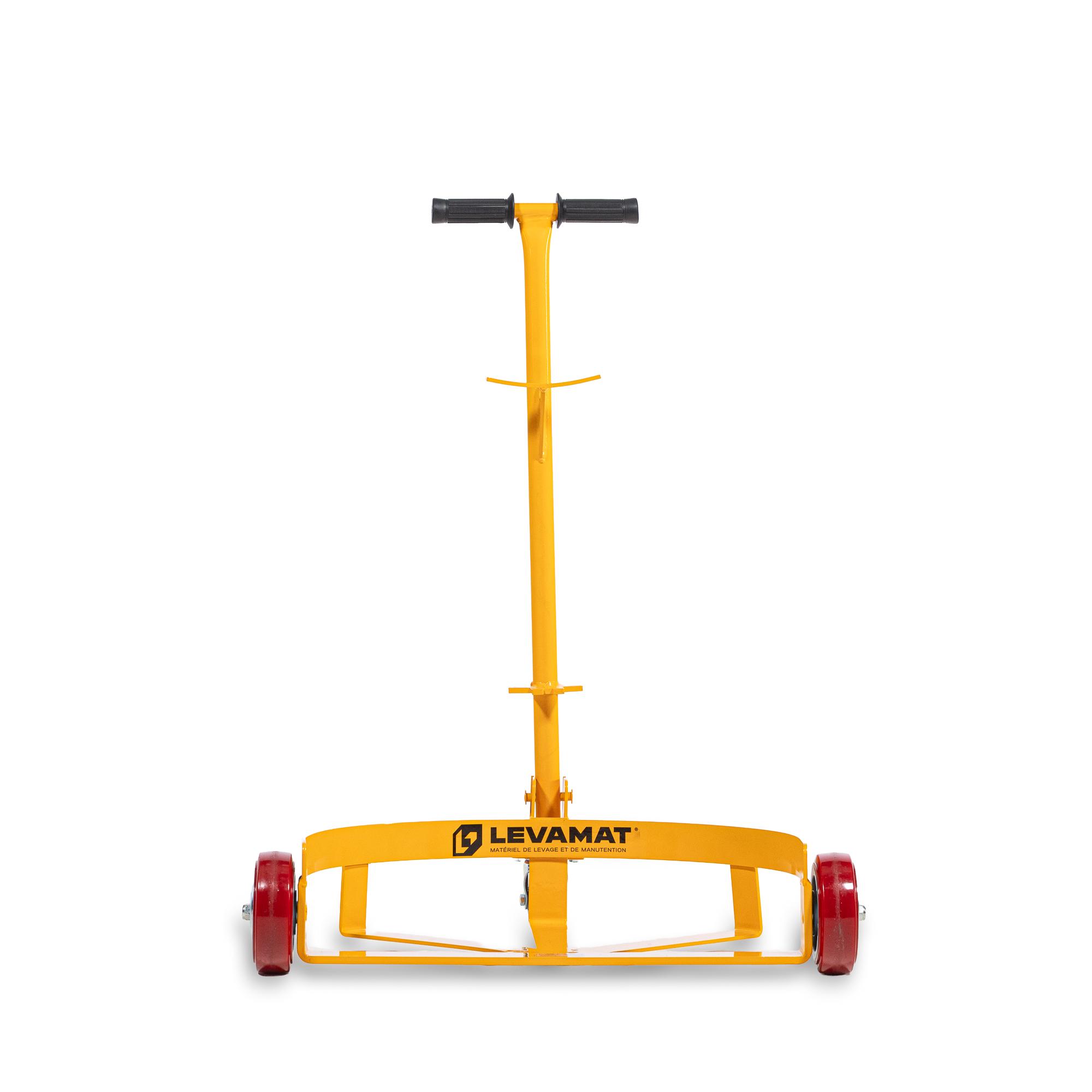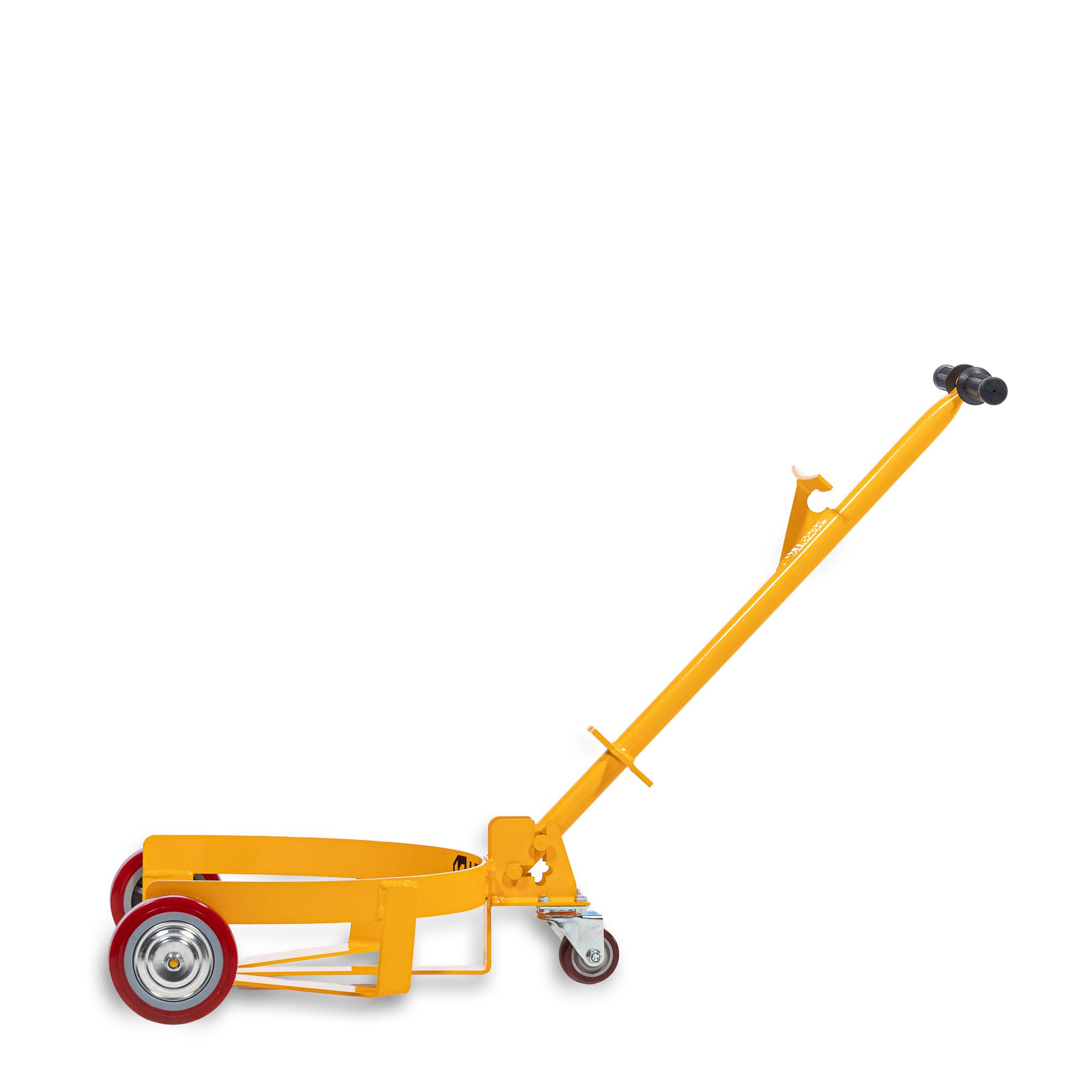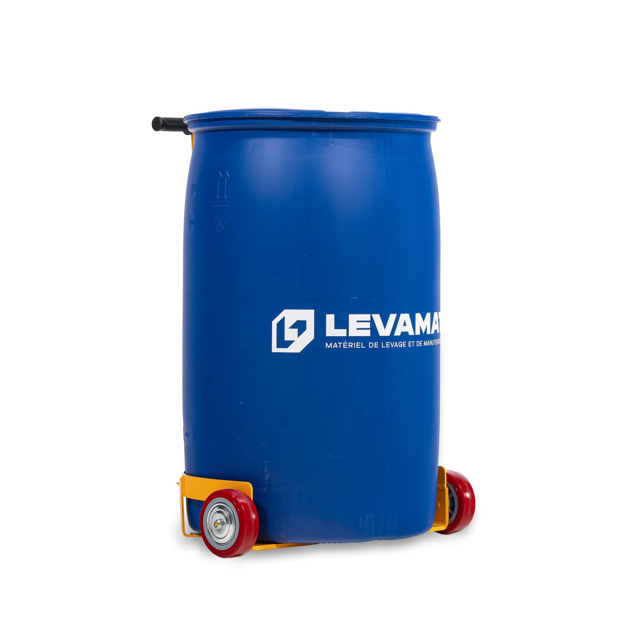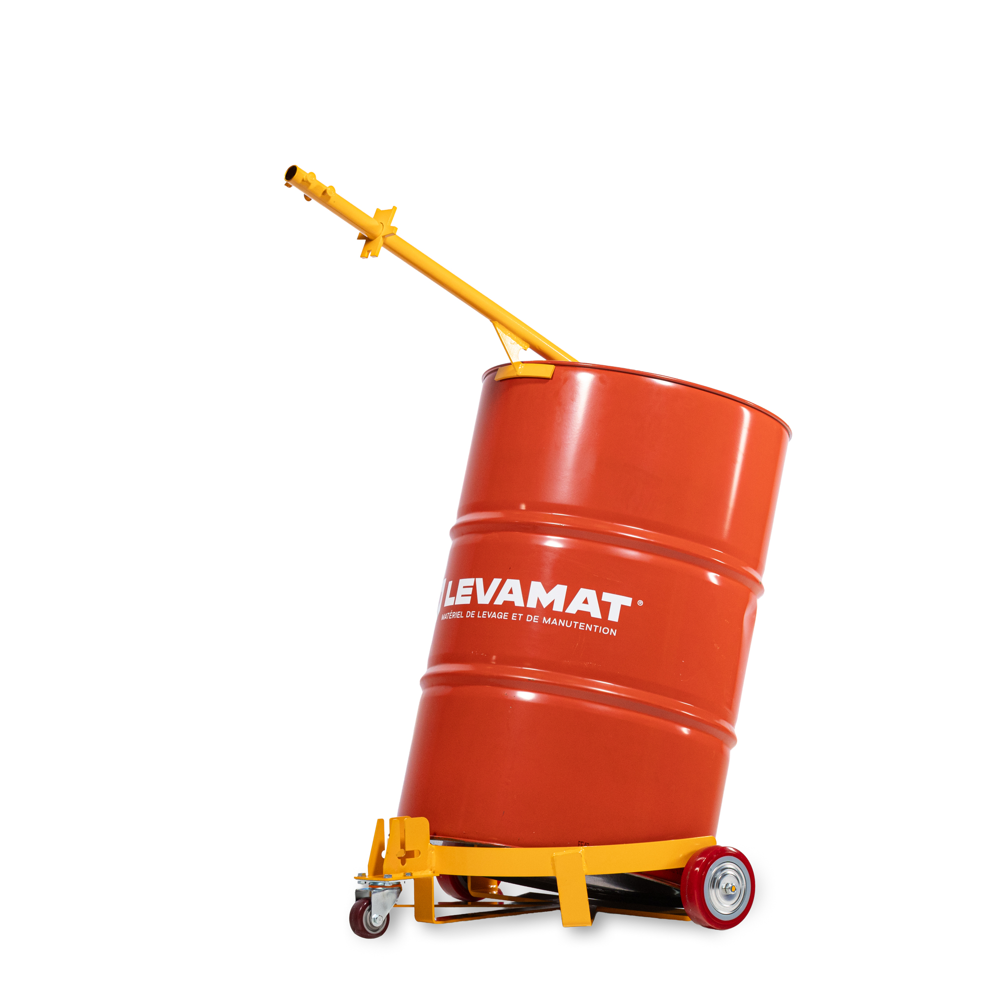 Le manche détachable permet de basculer le fût légèrement, pour faire glisser le châssis du chariot sous la base. Une fois en place, le crochet de maintien intégré assure une stabilisation de la charge pendant le transport, sans besoin d’attache supplémentaire.