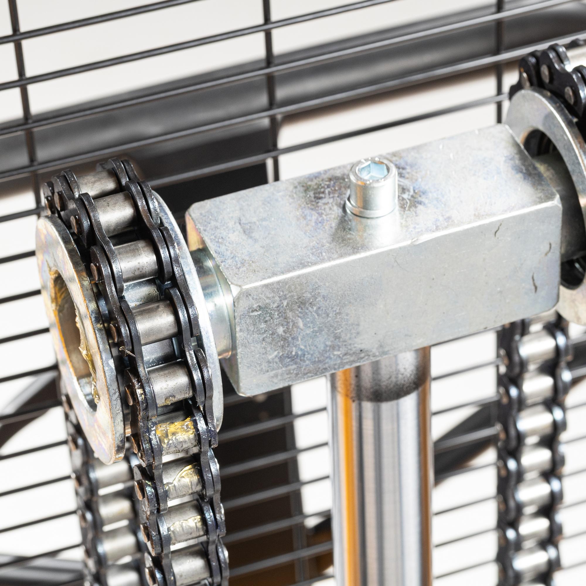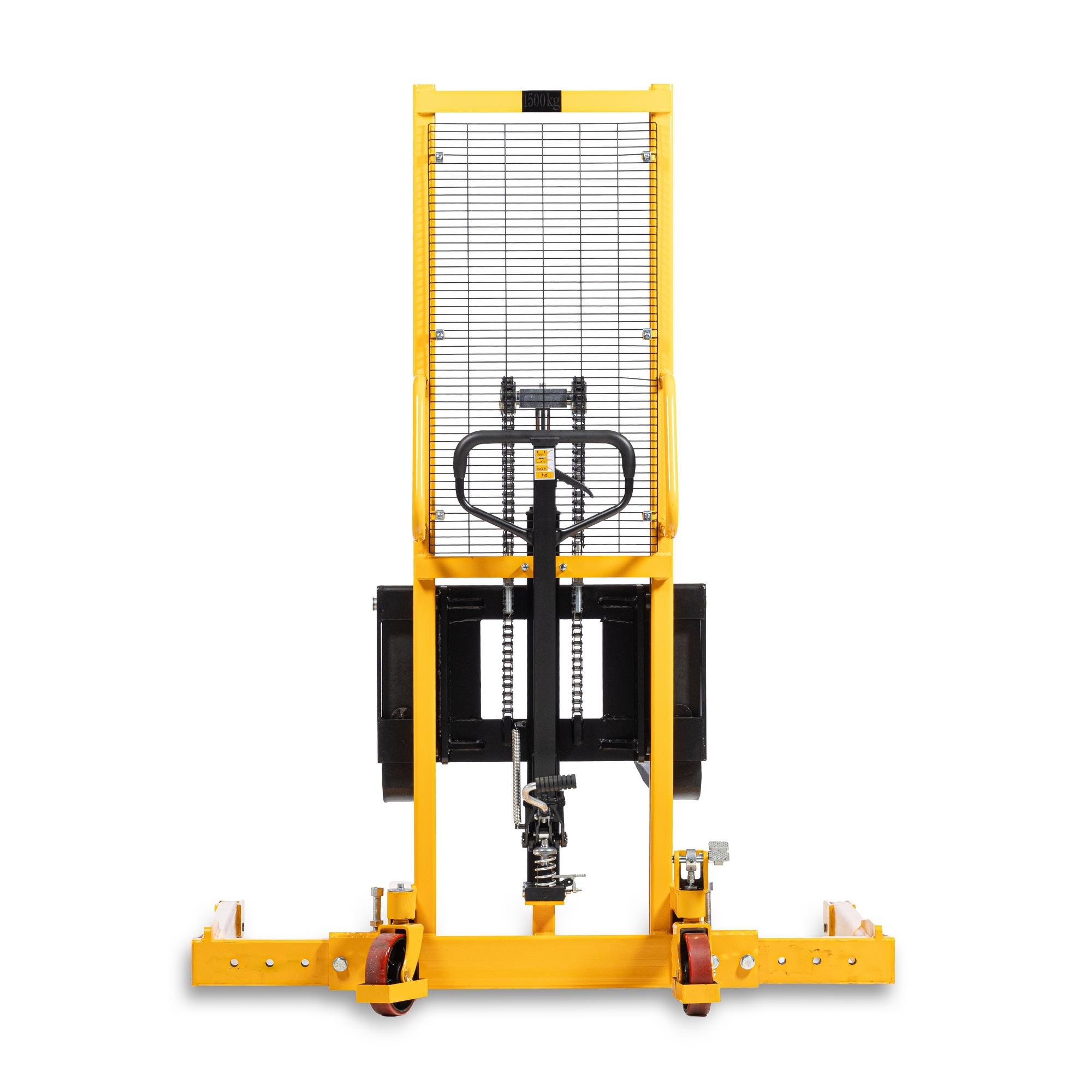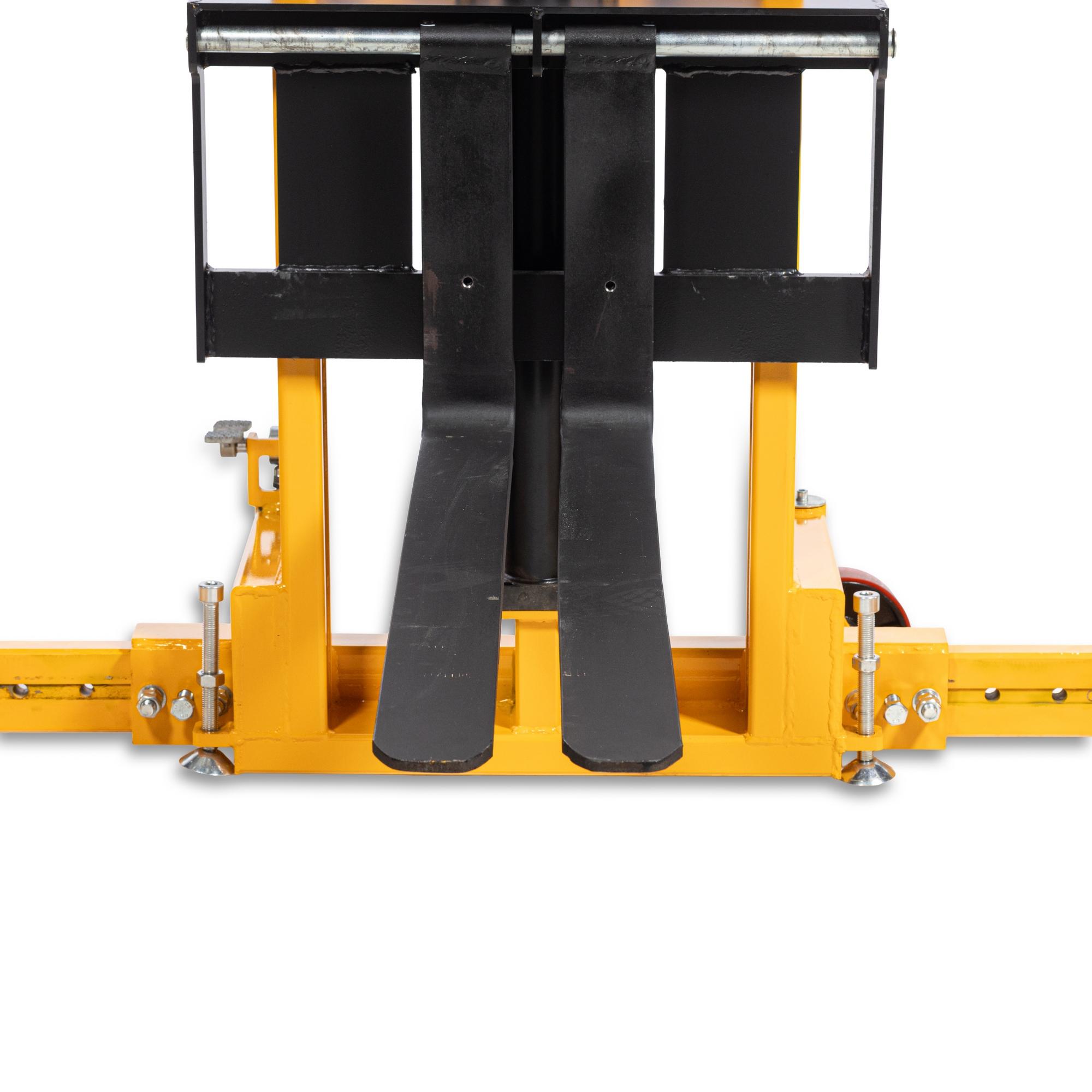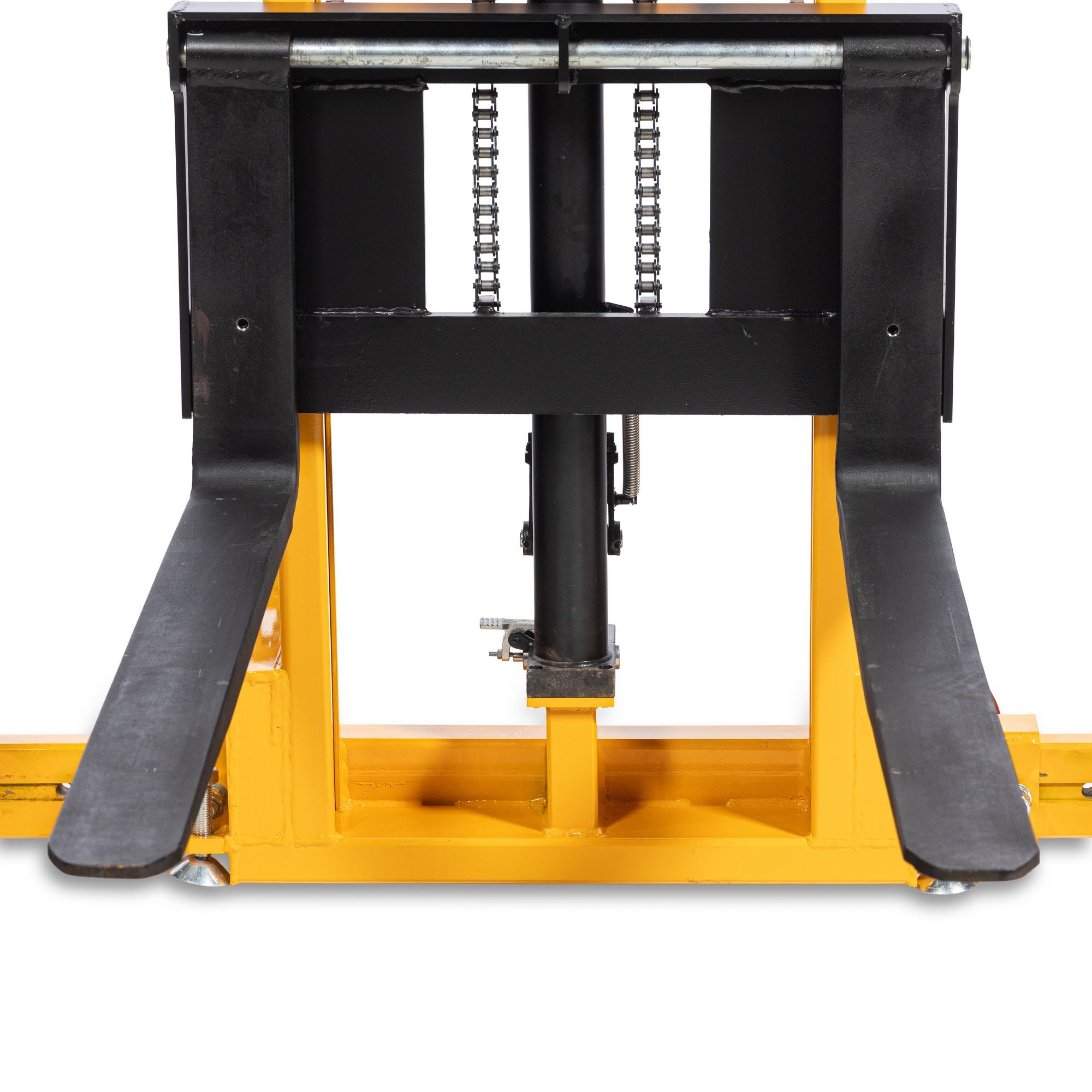 Son écartement intérieur de 1220 mm au sol et ses fourches réglables de 10 à 640 mm permettent une grande adaptabilité aux formats de palettes variés, notamment dans les secteurs industriels ou dans les centres de distribution où la standardisation des supports n’est pas systématique.