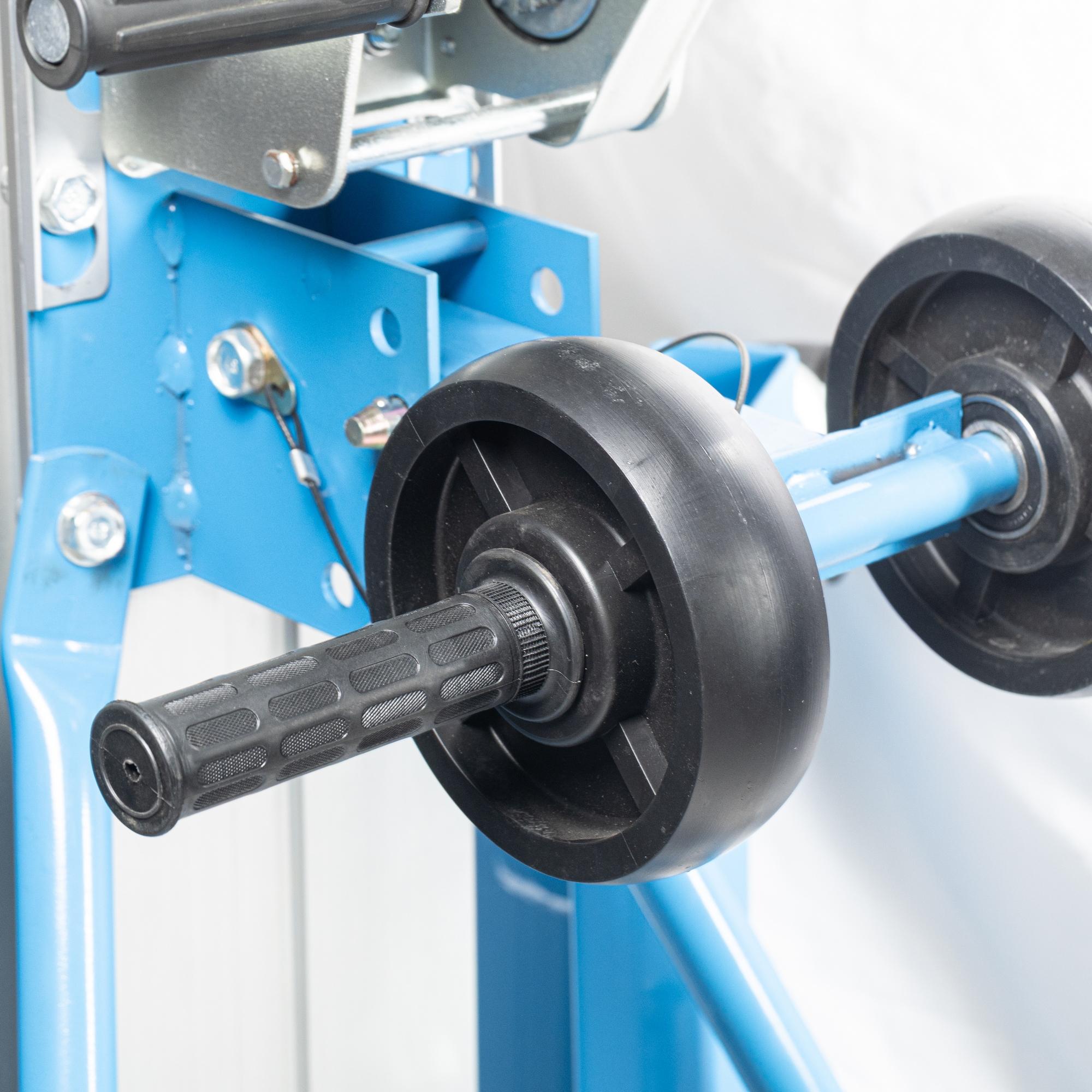 Son double mât télescopique assure une montée verticale parfaitement contrôlée jusqu’à 3500 mm, permettant d’atteindre des hauteurs importantes avec précision et sans risque de basculement.
