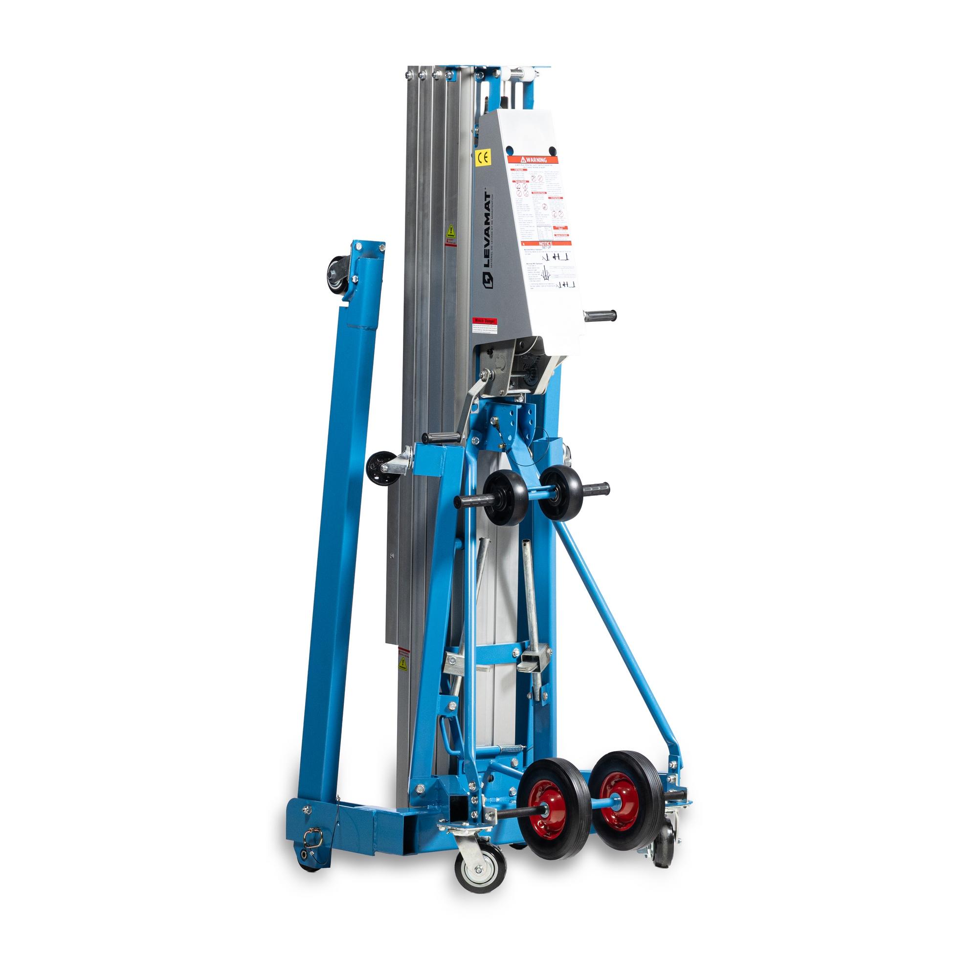 La levée de la charge se fait manuellement par treuil, avec un système de manivelle autofreinée, empêchant toute descente involontaire. Cette conception assure un contrôle précis de l’élévation, même en cas de relâchement de la manivelle. Le déplacement de l’appareil est facilité par de multiples roues intelligemment positionnées, permettant un déplacement aisé par une seule personne sur le chantier ou dans l’atelier. L’appareil reste léger et maniable malgré sa capacité d’élévation importante.