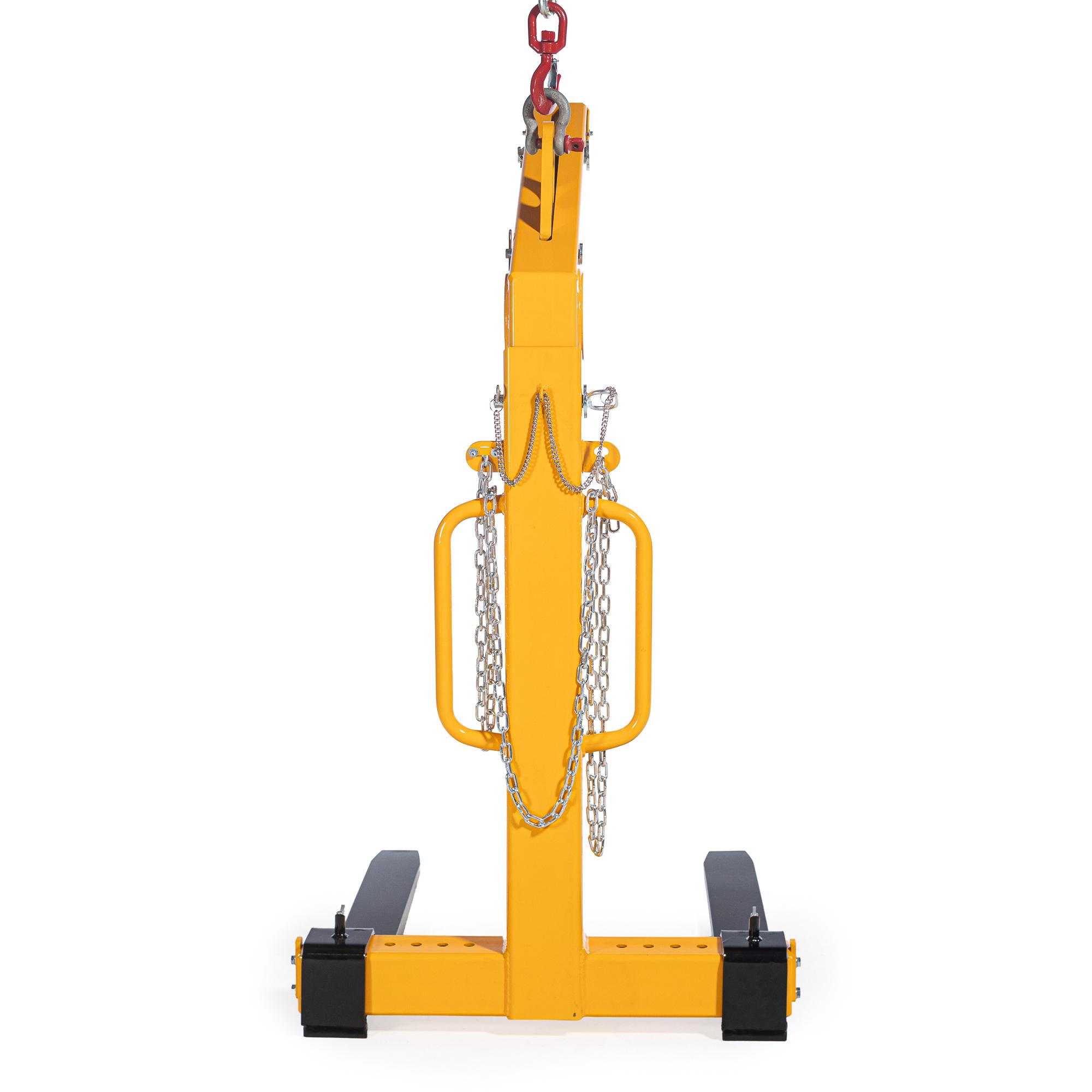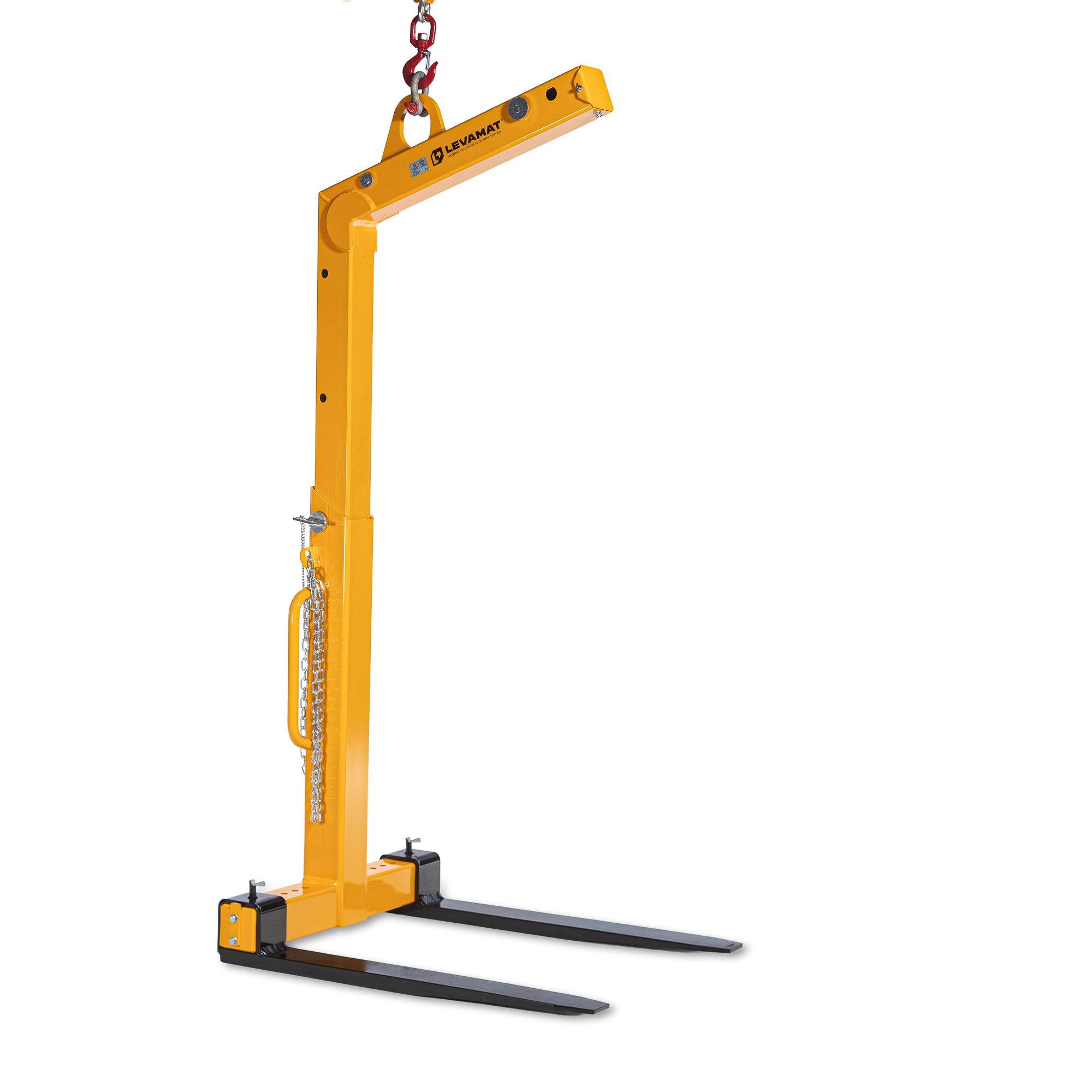 Le système auto-équilibré permet à un seul opérateur de manipuler une palette en sécurité sans réajuster manuellement le point d’accroche, ce qui rend l’outil idéal pour une utilisation suspendue avec une grue, y compris en environnement mobile ou irrégulier.