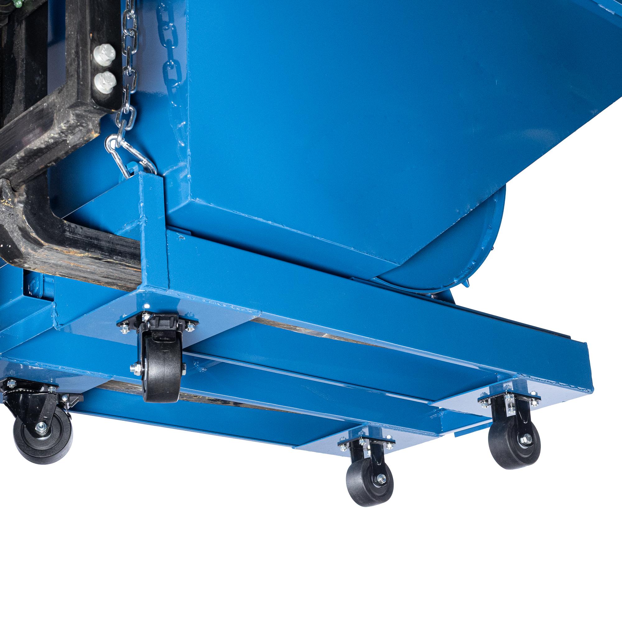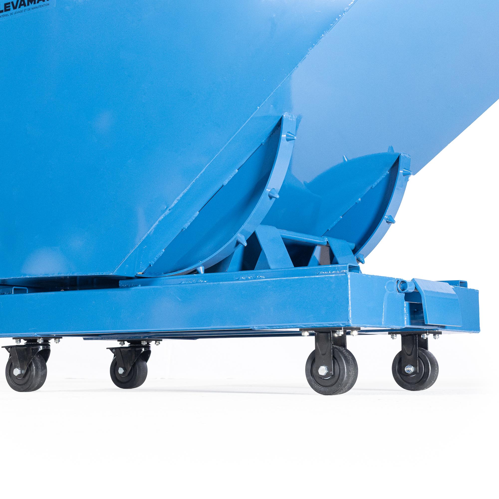 Les roues offrent une alternative complémentaire à la préhension par fourreaux. Elles permettent de déplacer une benne plus facilement en zone restreinte ou en intérieur, sans bloquer l’usage d’un chariot. Cette souplesse est appréciée dans les configurations où plusieurs bennes doivent être déplacées rapidement ou en autonomie par un opérateur.