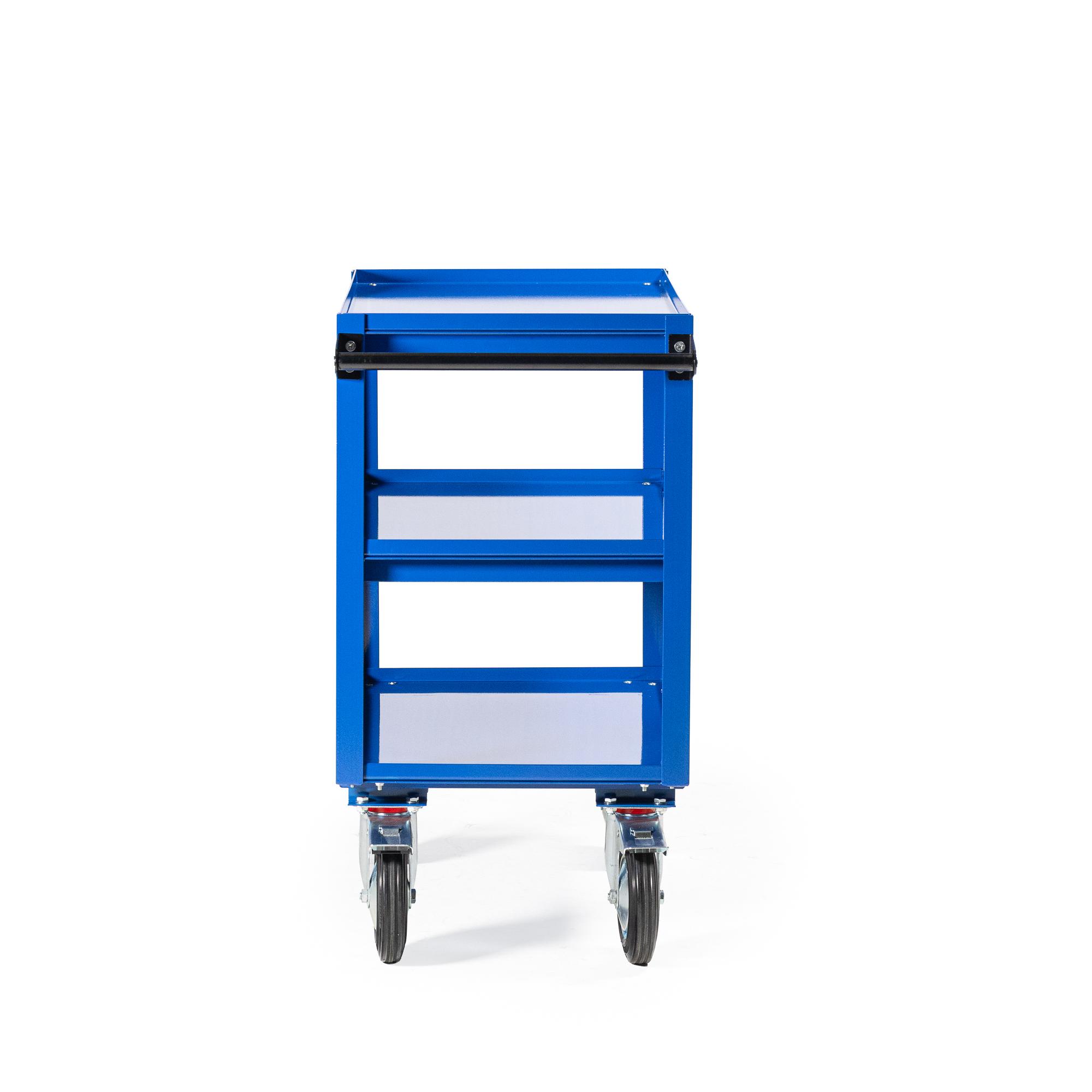 Les trois niveaux de rangement permettent de classer les éléments par catégorie ou par ordre d’intervention, ce qui simplifie les gestes et réduit les temps de recherche. Ce modèle est particulièrement utile pour les zones techniques, ateliers de montage ou opérations de maintenance, où l’optimisation du trajet et du matériel est un enjeu de productivité.