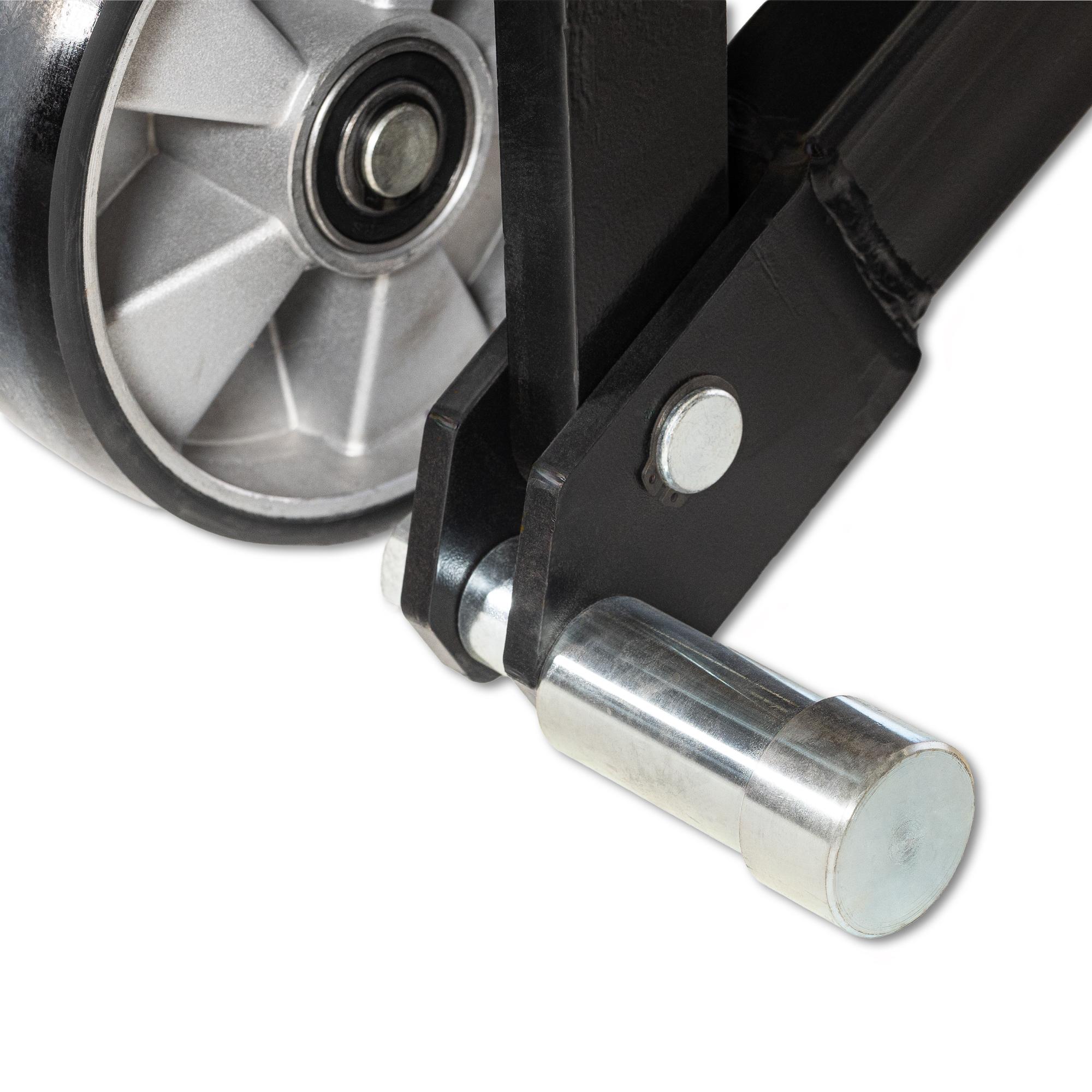 Le levage complet à vide s’effectue en seulement 19 coups de pompe pour atteindre 800 mm. Une soupape de sécurité empêche la levée si la charge dépasse la limite autorisée, protégeant ainsi la pompe hydraulique.