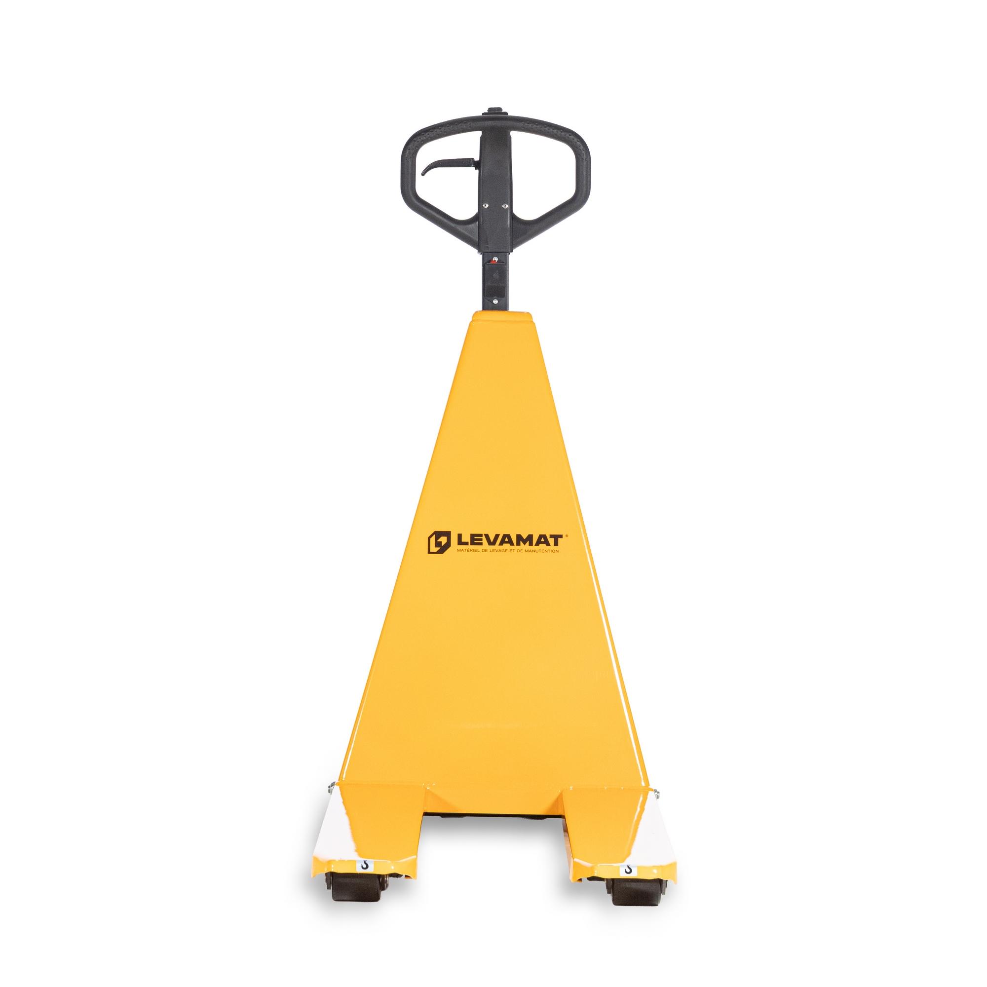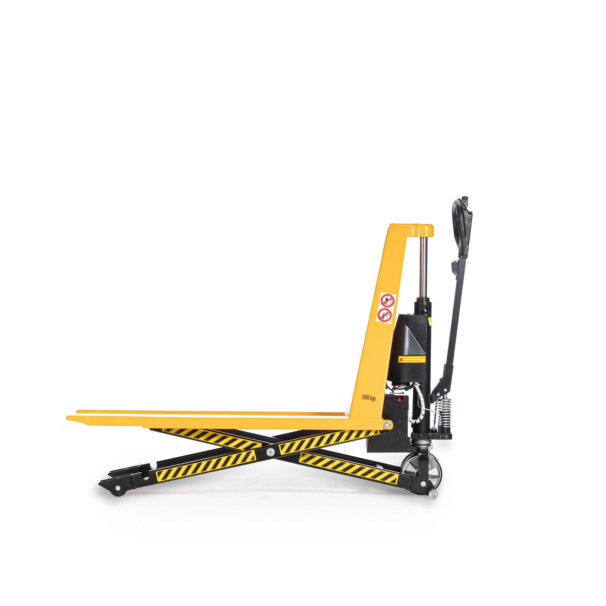 Ce transpalette manuel haute levée permet de mettre les palettes à hauteur de travail, jusqu’à 800 mm, pour faciliter les opérations de manutention sans se pencher. Avec une capacité de 1000 kg (poids uniformément réparti, centre de gravité ≤ 580 mm), il est recommandé pour une utilisation jusqu’à 700 kg pour une efficacité optimale. En savoir plus