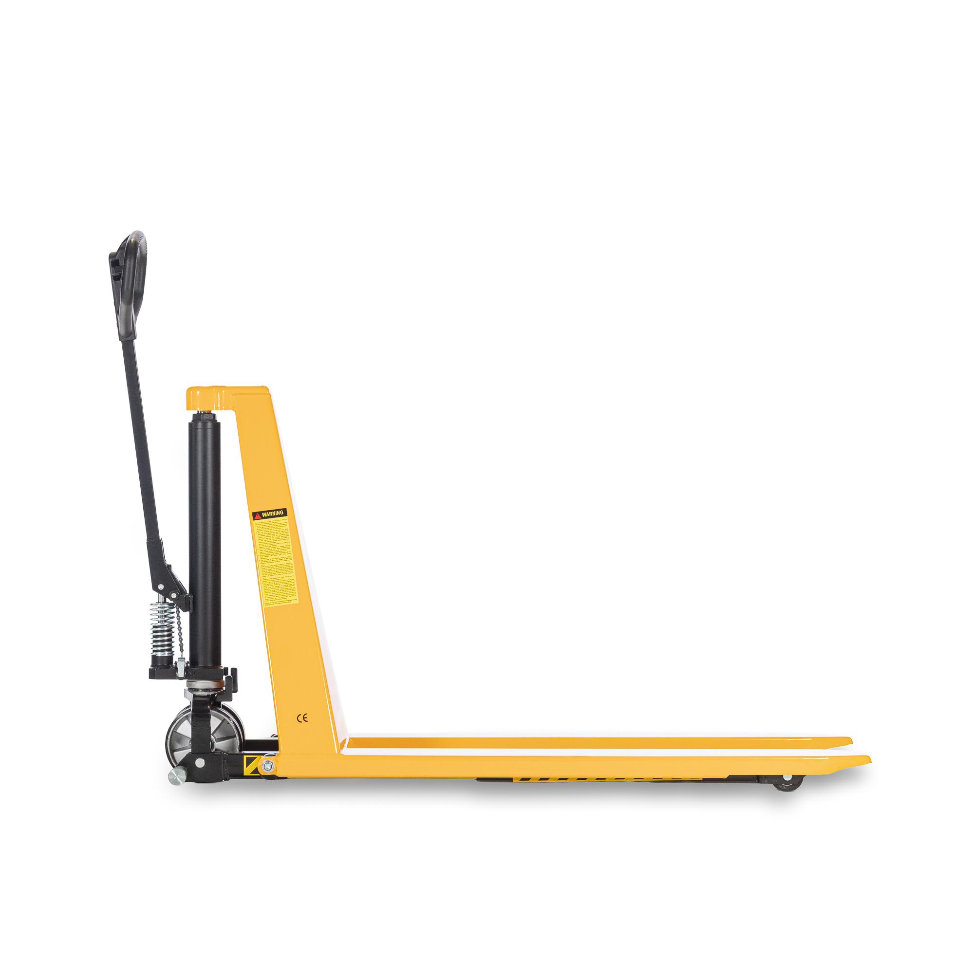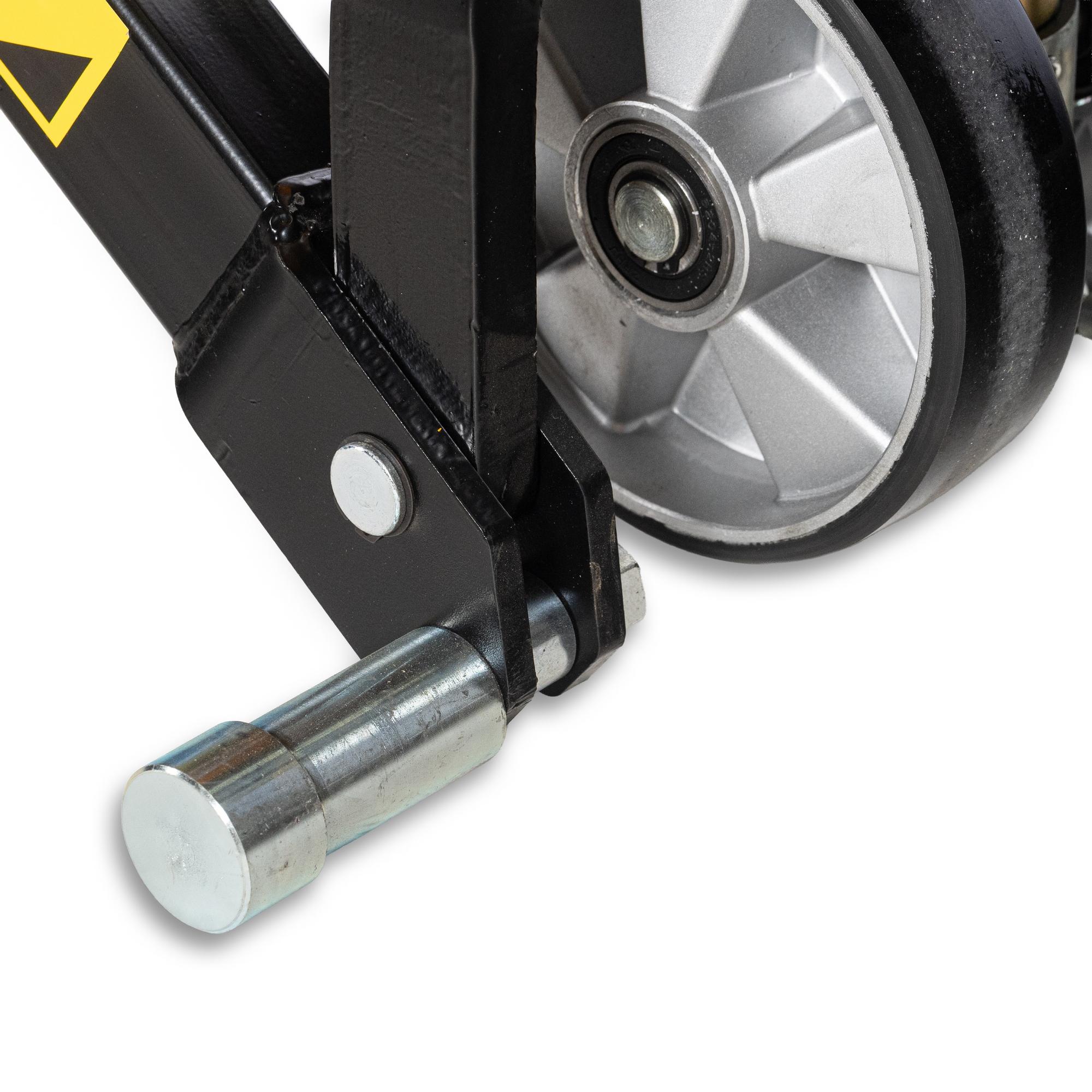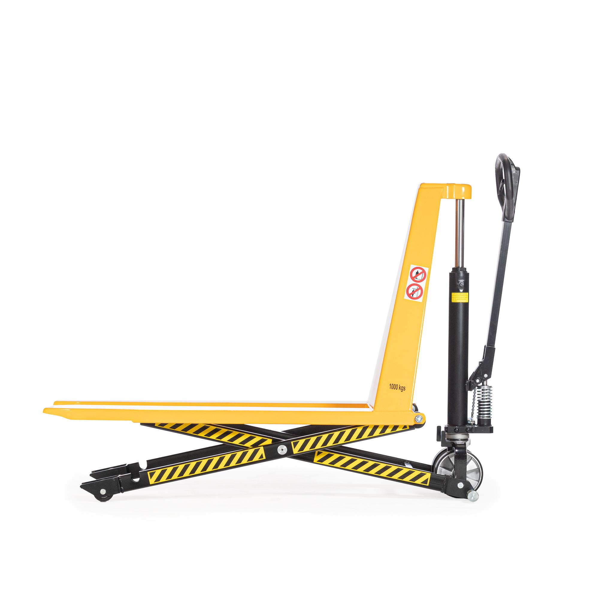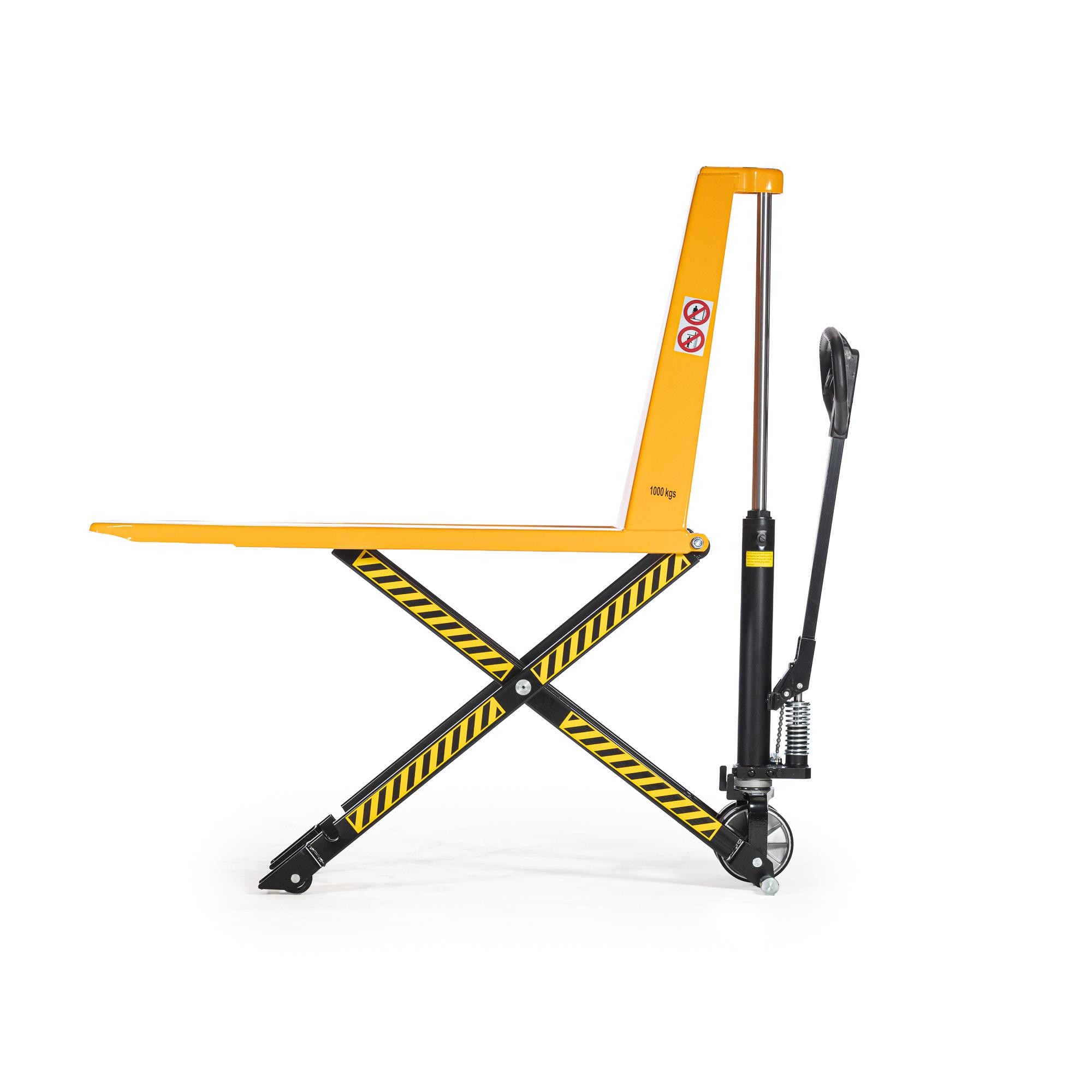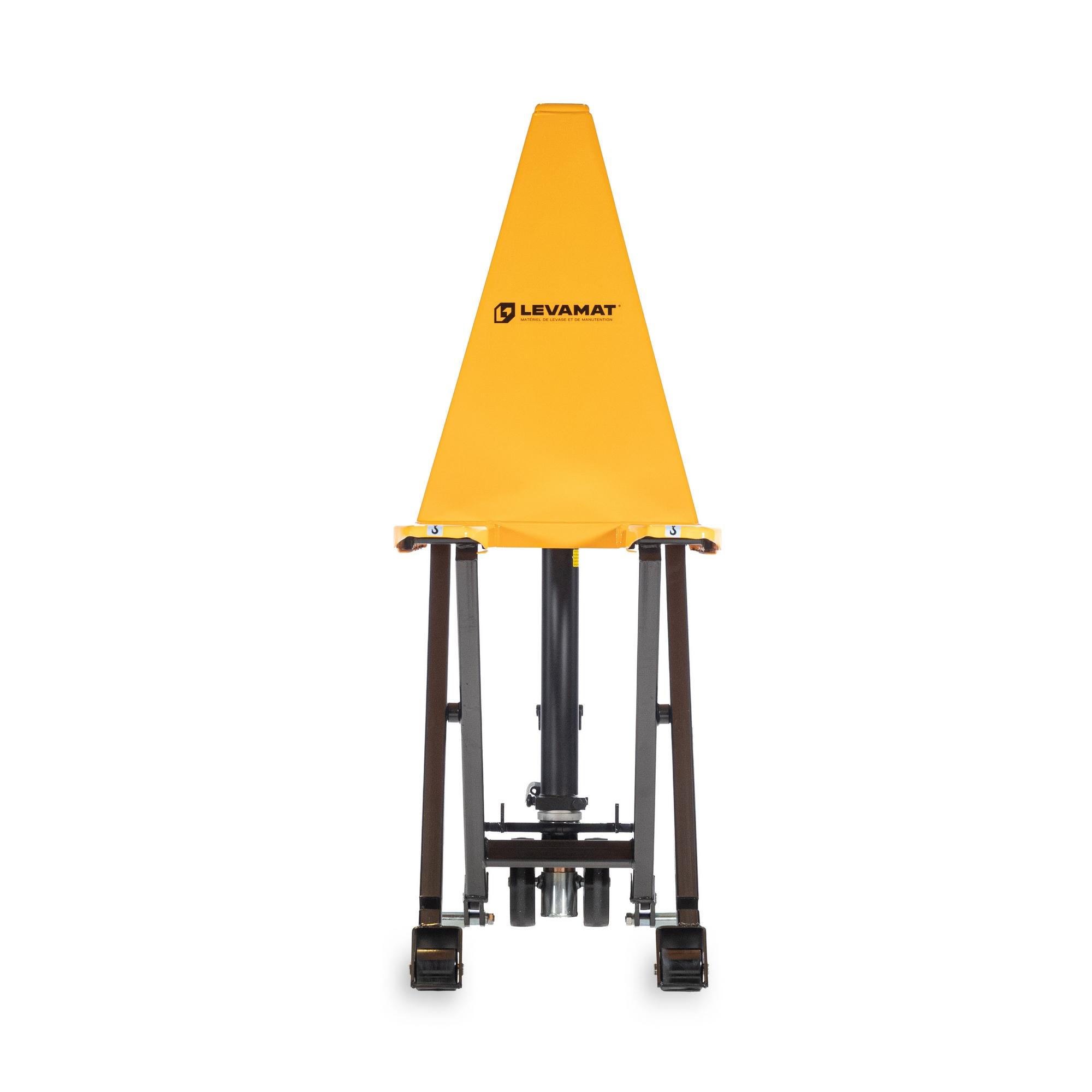 Ce modèle est équipé d’un système de levée manuelle par pompe hydraulique avec un seul vérin, permettant une montée rapide et fluide jusqu’à 800 mm. La manipulation se fait via un timon à trois positions, simple à prendre en main : levée, neutre, descente.