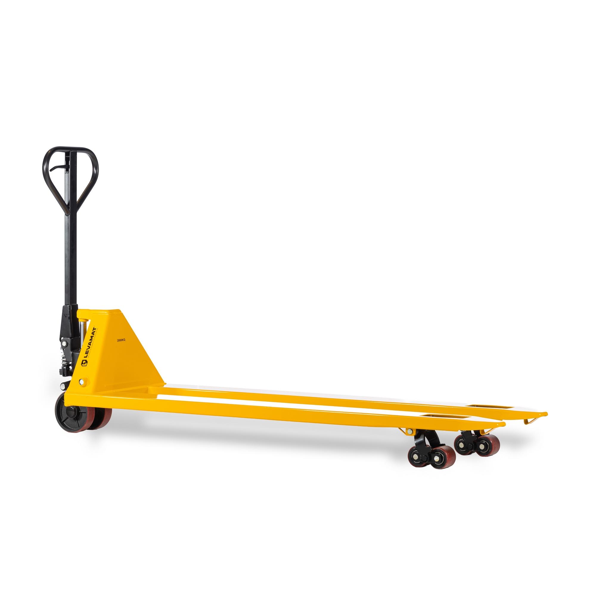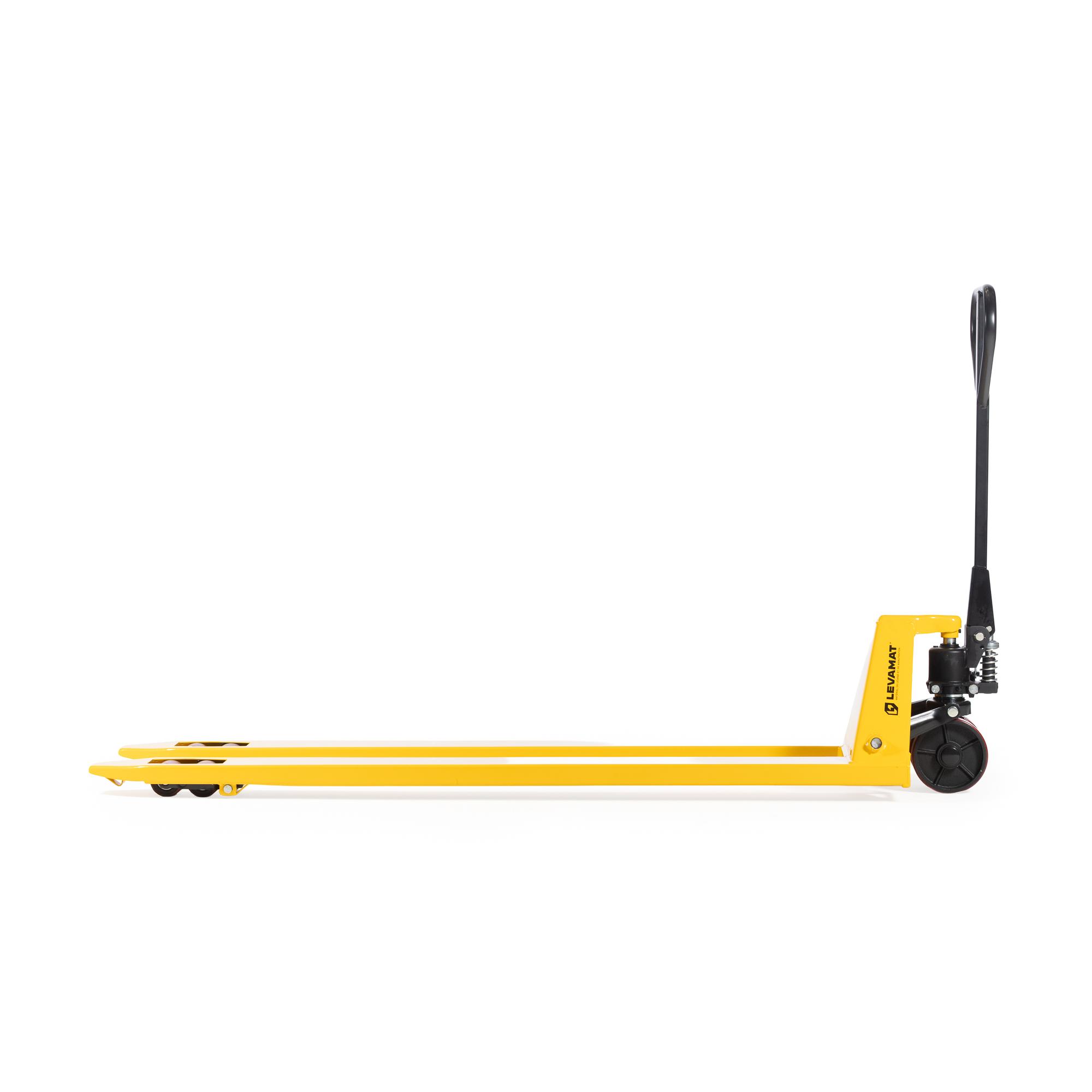 La structure du transpalette est en tôle d’acier pliée, avec un revêtement époxy résistant aux chocs et aux rayures. Son timon renforcé assure une conduite précise et durable, même en conditions soutenues.