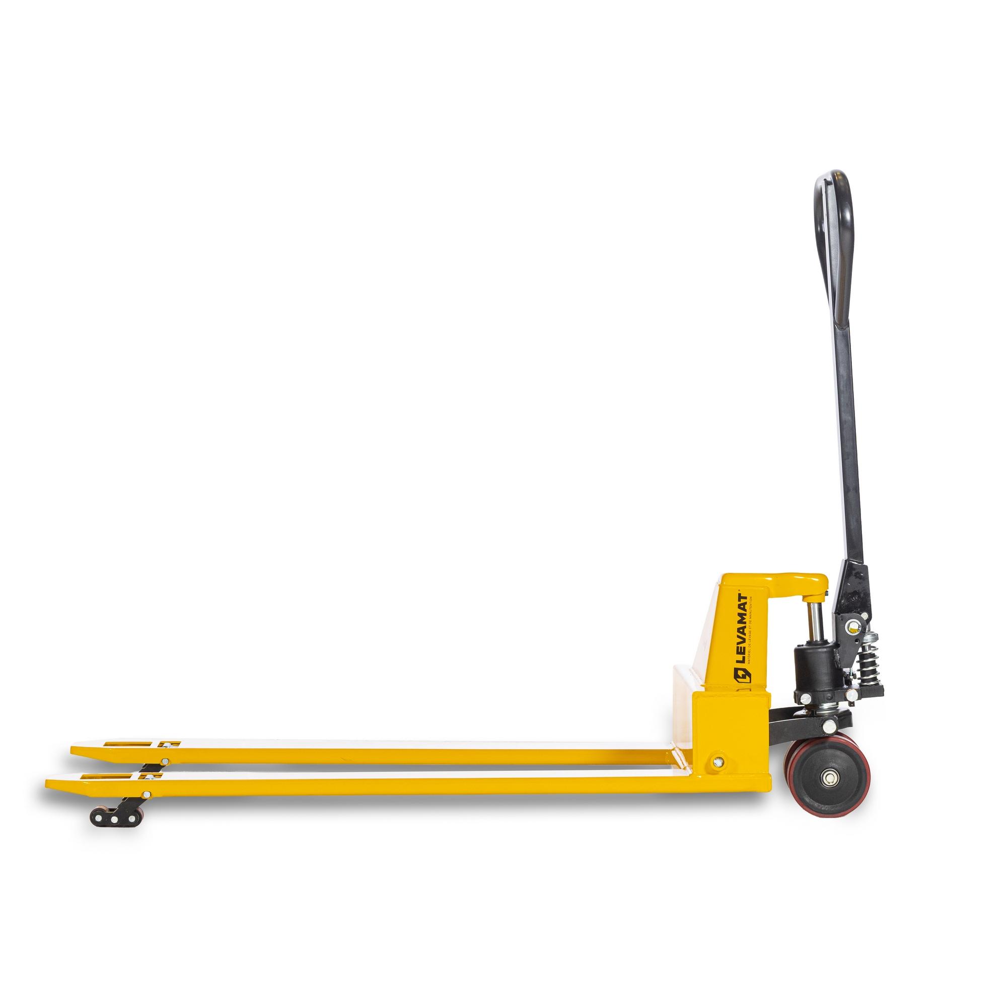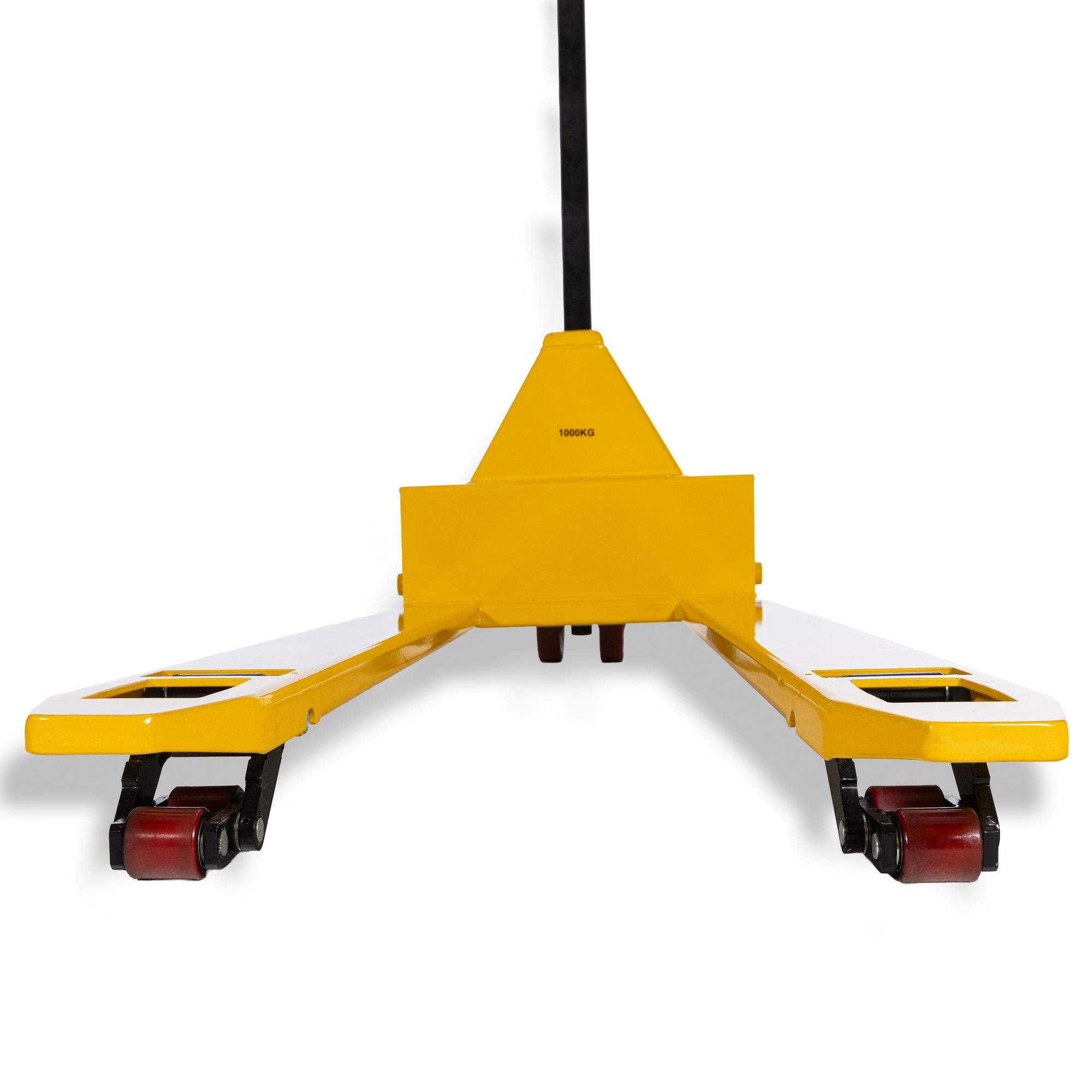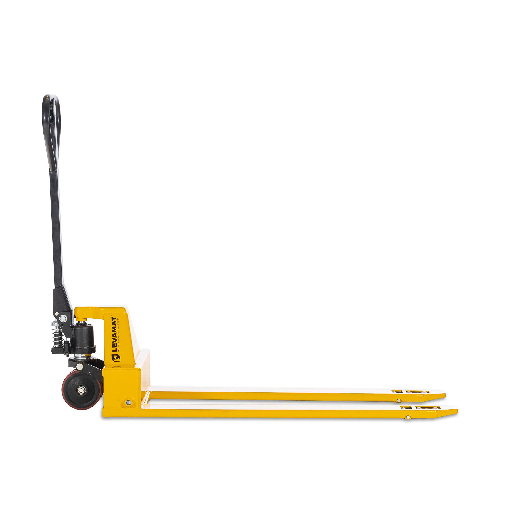 Avec une hauteur abaissée de seulement 35 mm, ce tire-palette est conçu pour ces cas d’usage où l’accès par le dessous est extrêmement limité, sans modifier les conditions de manutention habituelles.